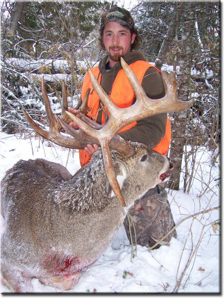 30-year old Dave Bennett from Sioux Narrows took this magnificent Whitetail Buck. Dave is a professional guide and came across the buck while scouting for Moose.